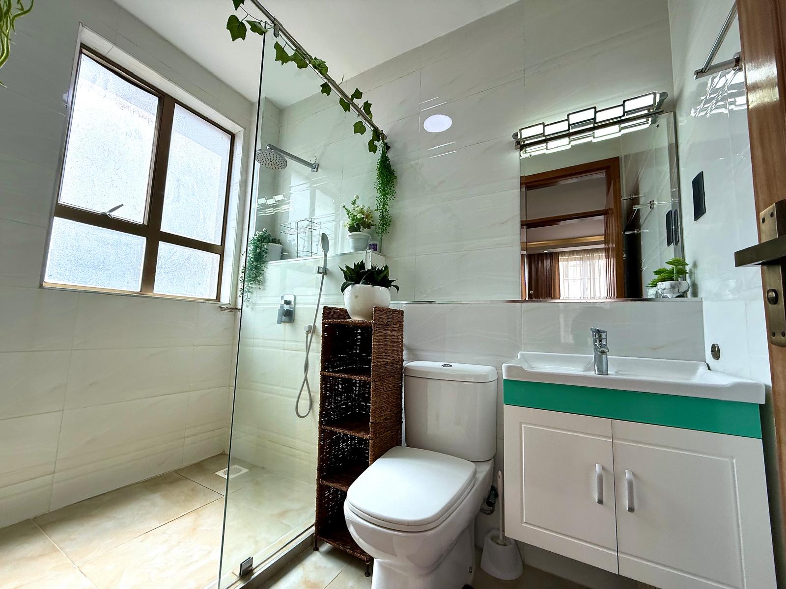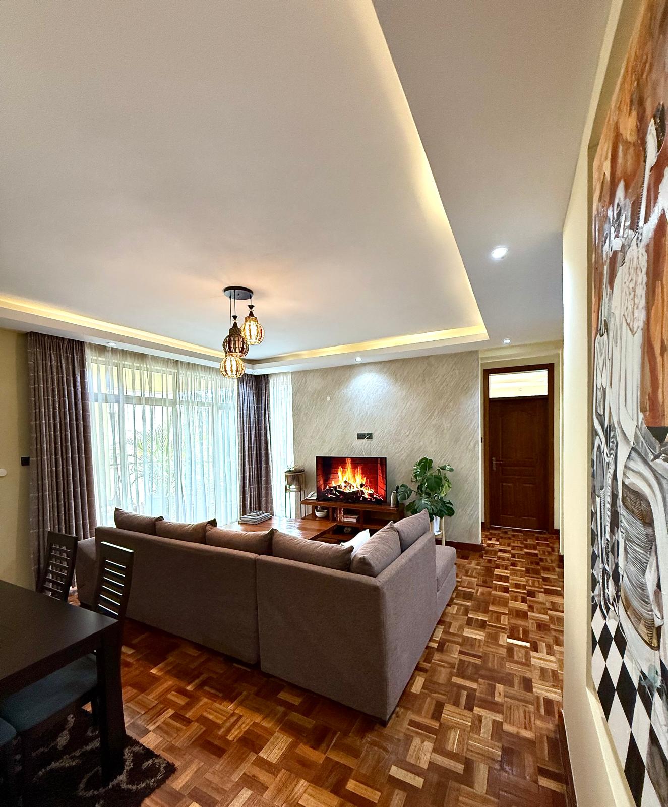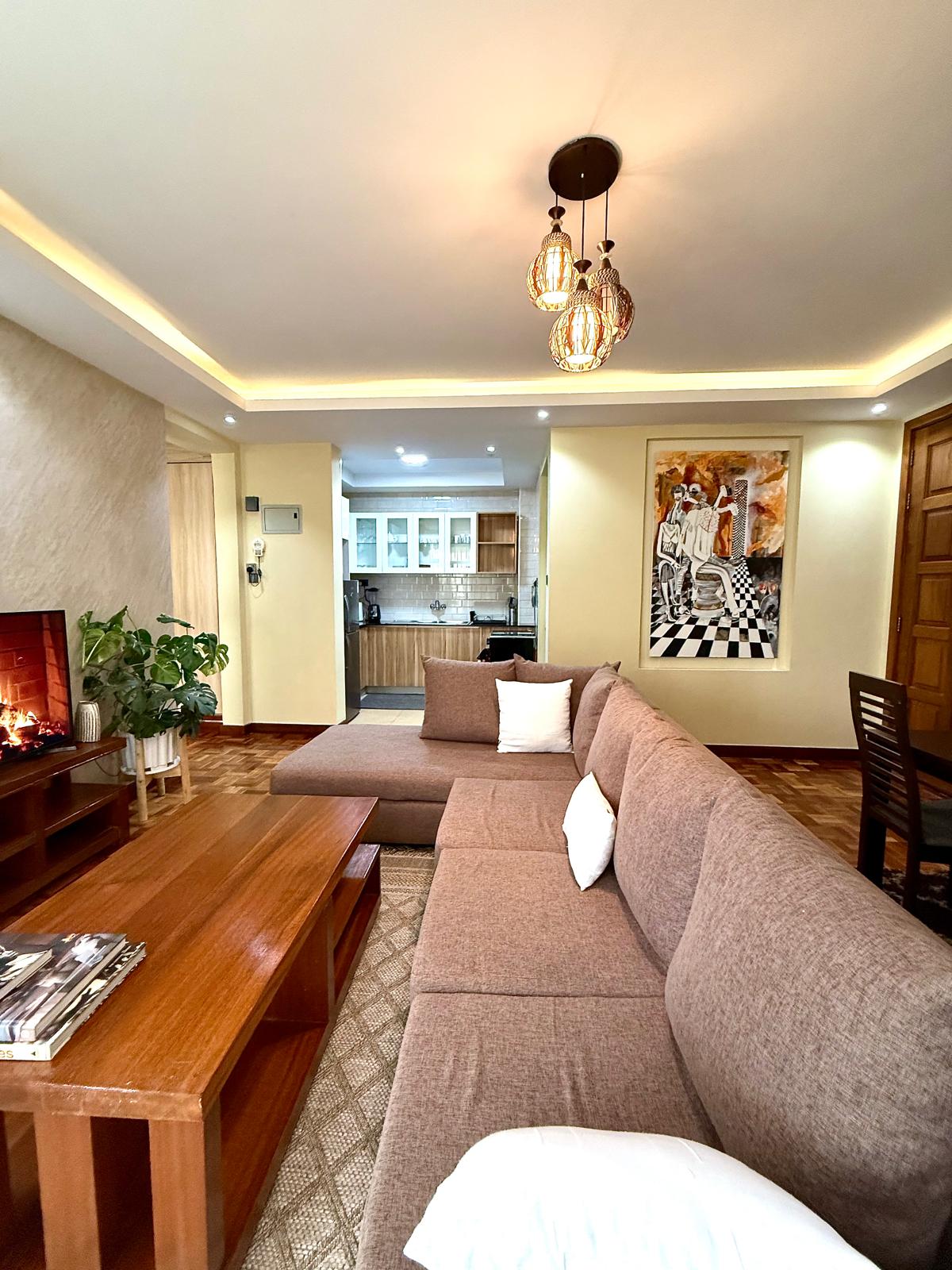 1 bedroom fully furnished at Tashana Apartment, Othaya road, Kileleshwa. It is B10 at 3rd floor. It has 1 bedroom and 2 washrooms
