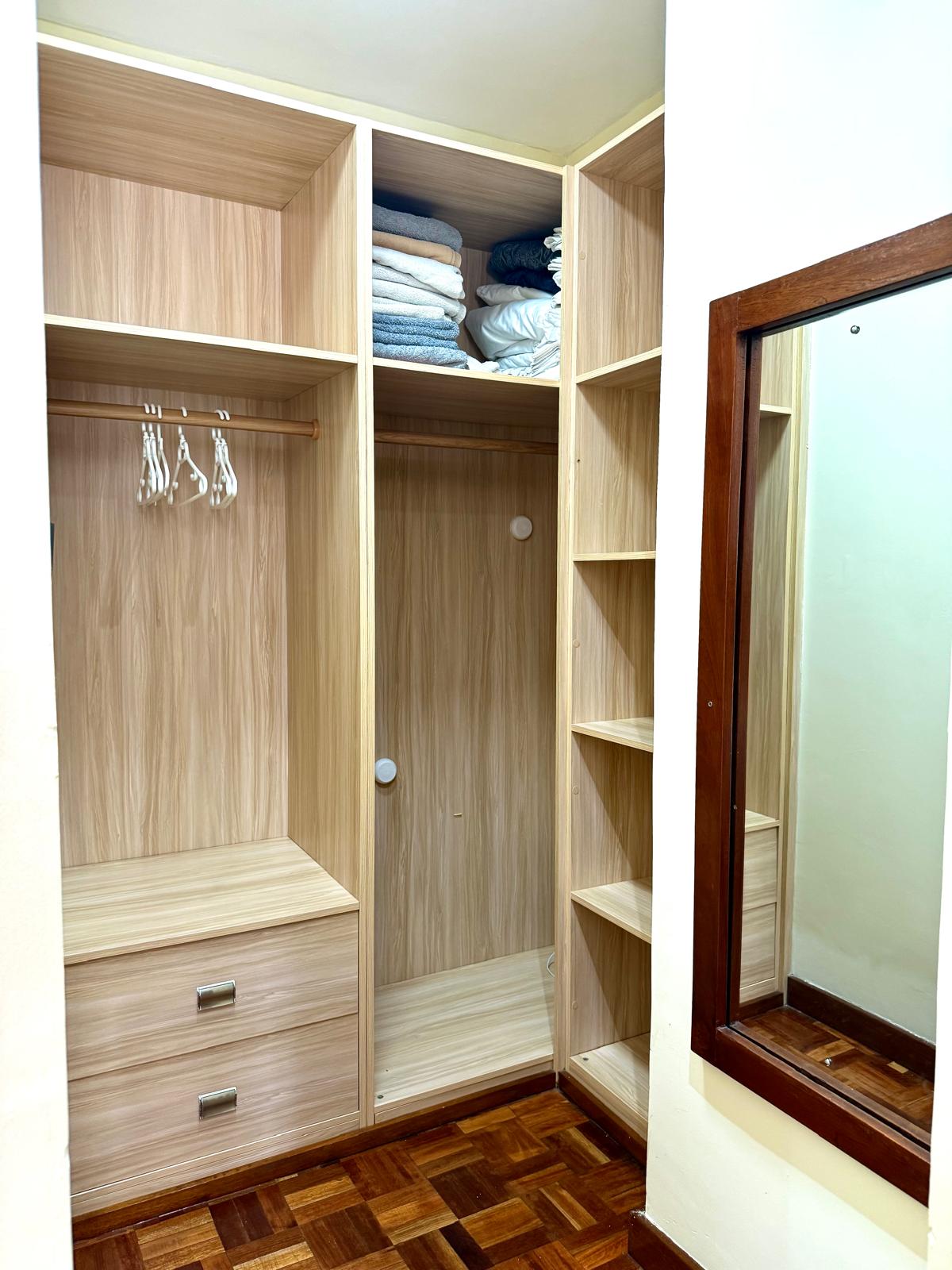 Kitchen1 bedroom fully furnished at Tashana Apartment, Othaya road, Kileleshwa. It is B10 at 3rd floor. It has 1 bedroom and 2 washrooms