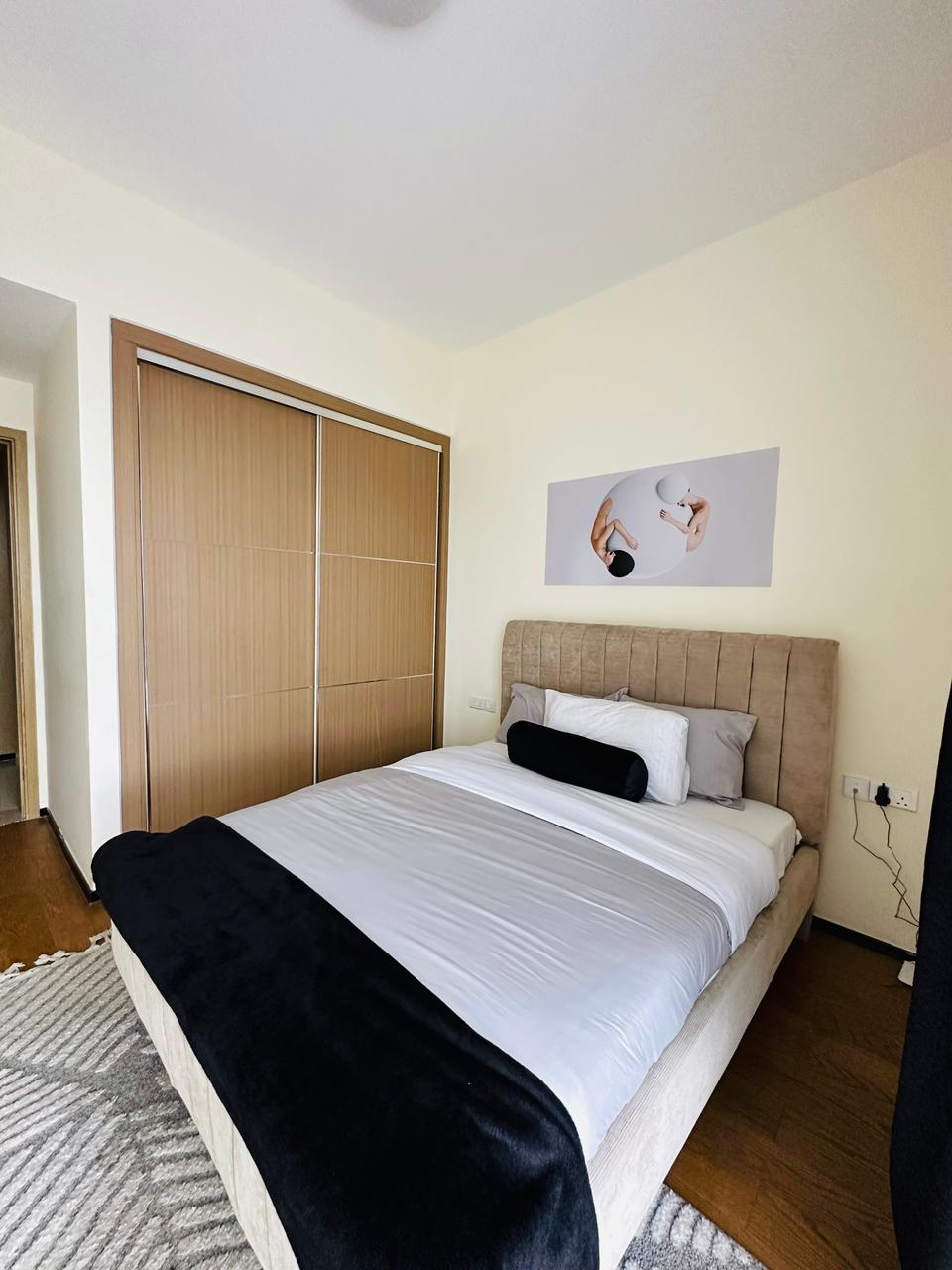 We offer 2 bedroom serviced apartments in the heart of westtlands at the GTC apartments block C. Our apartments come with amenities included like Gym, sauna, theater and mall access. The apartment is a 2 bedroom apartment all ensuite and has a bathroom for the guests. It overlooks the nairobi esxpressway and westlands.