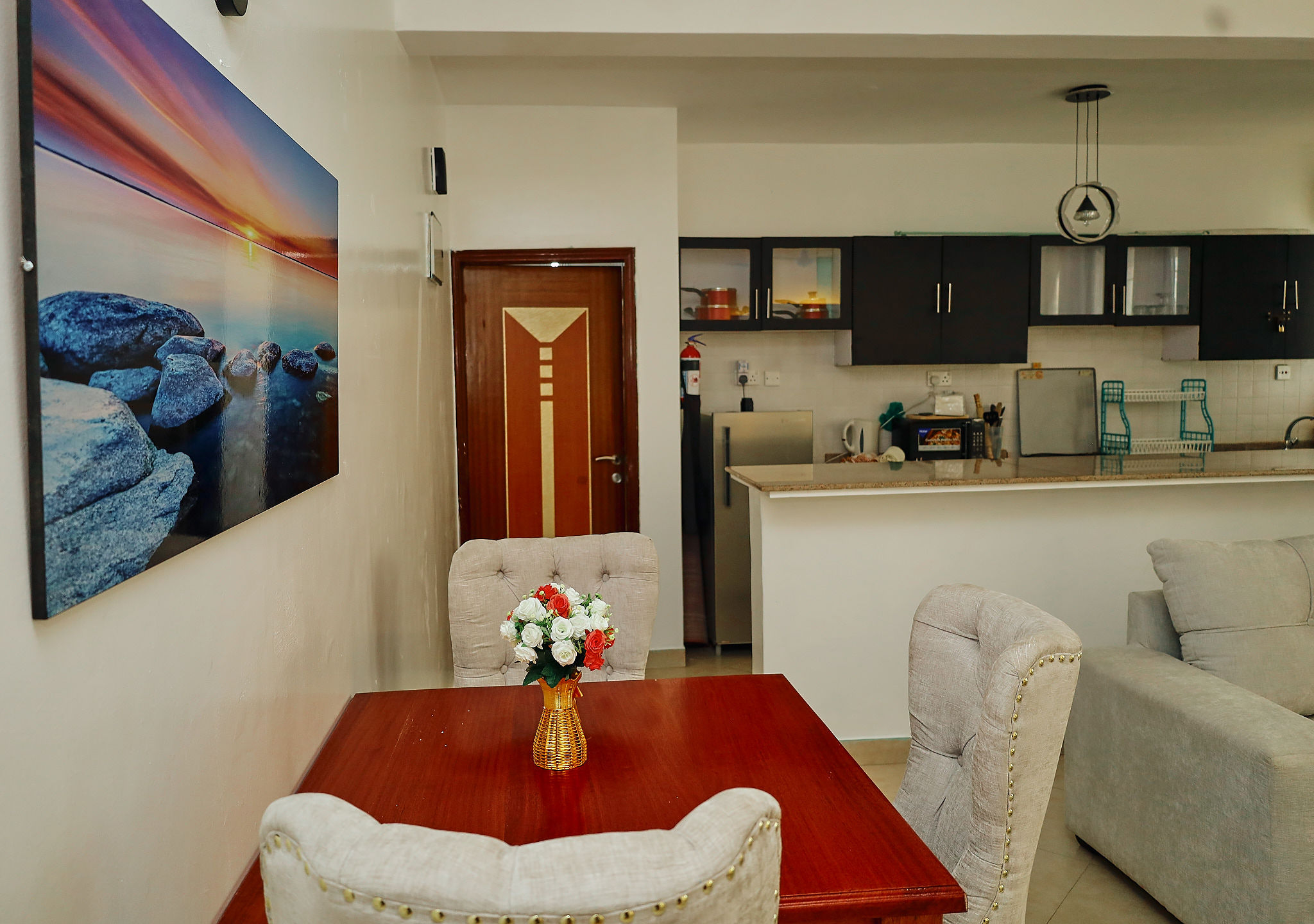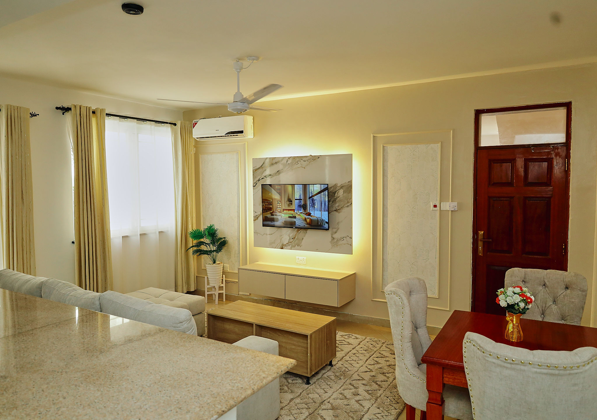 This modern, furnished 1-bedroom apartment is a 4-minute walk to the Beach and Nyali Centre. Perfect for couples, business travelers and vacationers looking for comfort, style, and convenience in Mombasa.